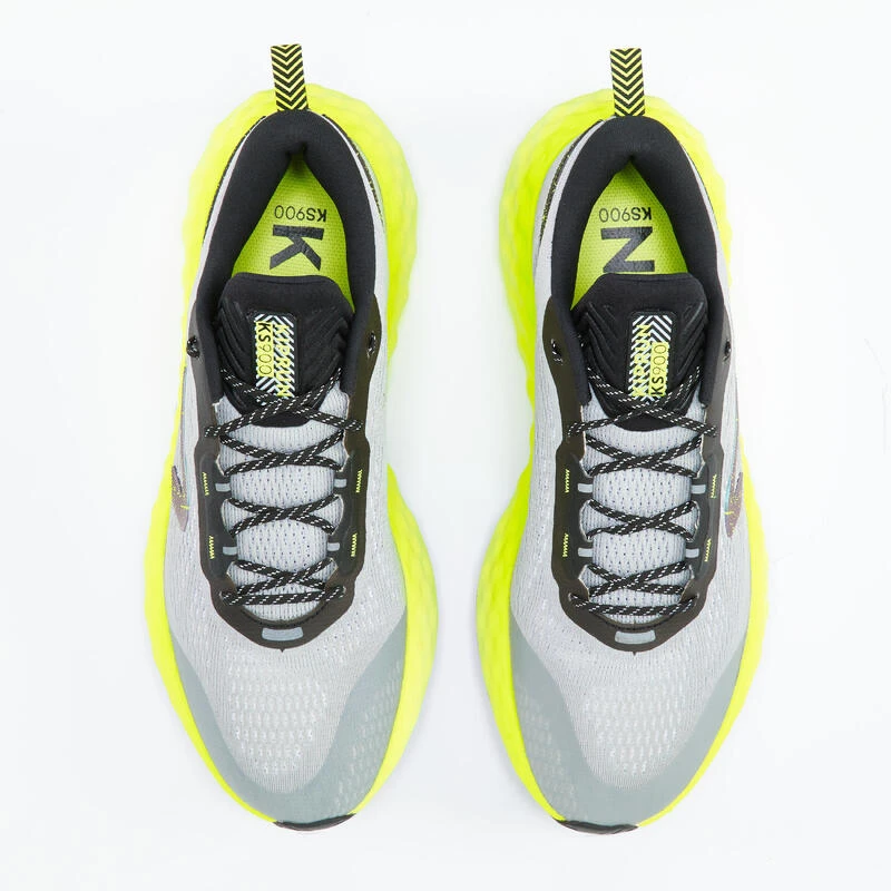 Afin d’apporter plus de stabilité à notre chaussure de running homme, la forme de la semelle de la KIPRUN KS900 est plus large que sur les autres modèles de la gamme. Cette surface de contact au sol plus importante apporte une meilleure stabilité des appuis en course grâce à une répartition des forces plus équilibrée, notamment sur longues distances.