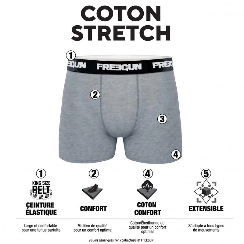 Les boxers Freegun en coton vous offrent un confort exceptionnel et une grande liberté de mouvement. Légers et respirants et sèchent rapidement.