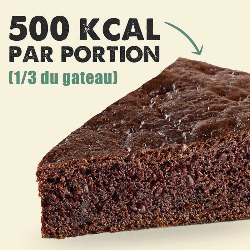 Préparation en poudre pour gâteau pour sportifs enrichie en calcium. Chocolat : Ingrédients : Sucre, farine de blé, préparation pour pain (farine de blé, gluten de froment, lactose et protéines extraites du lait, sel), pépites de chocolat 8% (pâte de cacao 49%, sucre, beurre de cacao 1,5%, émulsifiant : lécithine de soja), farines de céréales (riz, blé, orge), huile de tournesol, poudre de cacao 3,5%, germe de blé, lactose, poudre à lever : carbonates de sodium, minéraux : phosphate tricalcique, protéine de lait. Fabriqué dans un atelier qui utilise : autres céréales contenant du gluten, œuf, fruits à coque, céleri et sulfites.