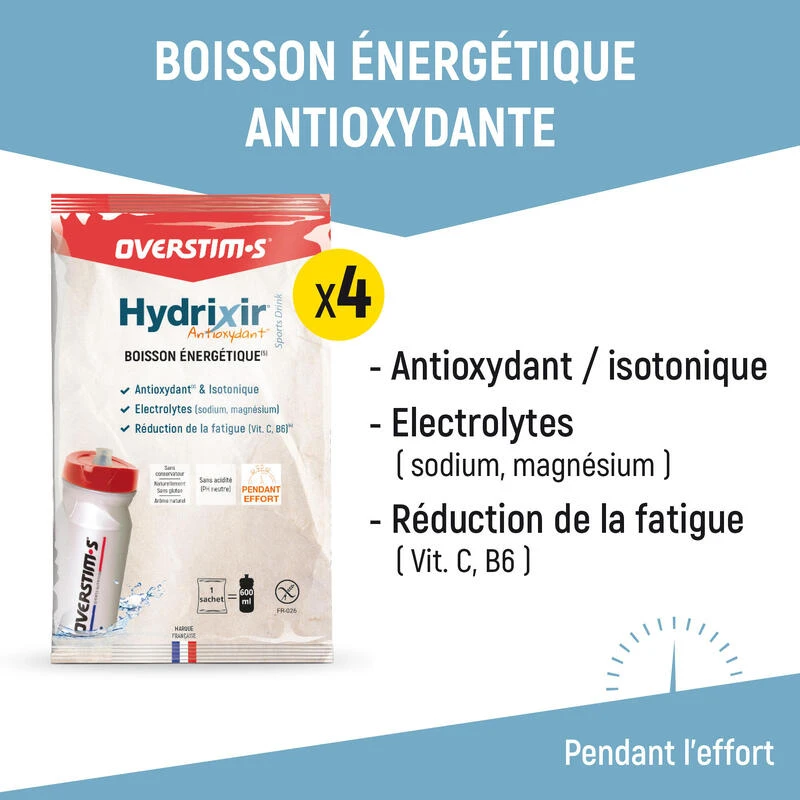 La boisson énergétique Hydrixir antioxydant est spécifiquement formulée pour fournir une hydratation optimale et l’énergie nécessaire au maintien de vos performances tout au long de l’effort. Isotonique, sans conservateur et sans acidité, elle est parfaitement tolérée.