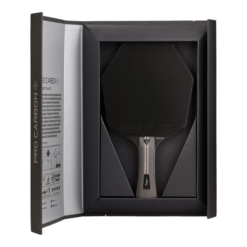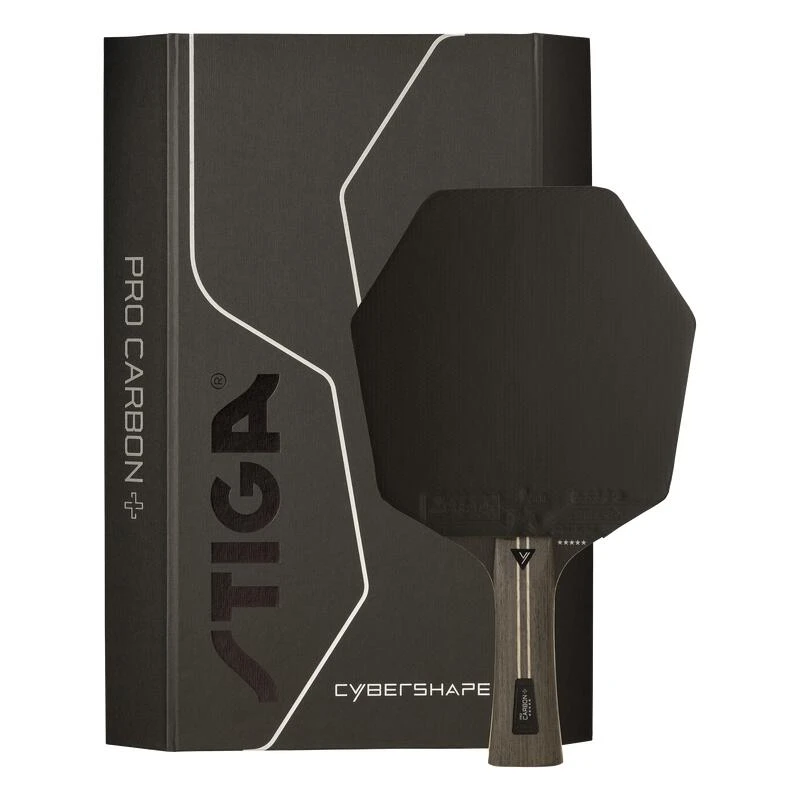 Pro Carbon+ Cybershape – Batte 5 étoiles. La surface de frappe optimisée fait la différence. 5 couches de bois et 2 couches de fibre de carbone, caoutchouc STAR5 approuvé par l’ITTF.
