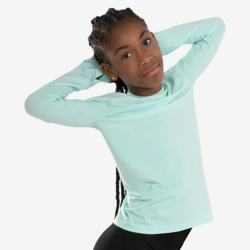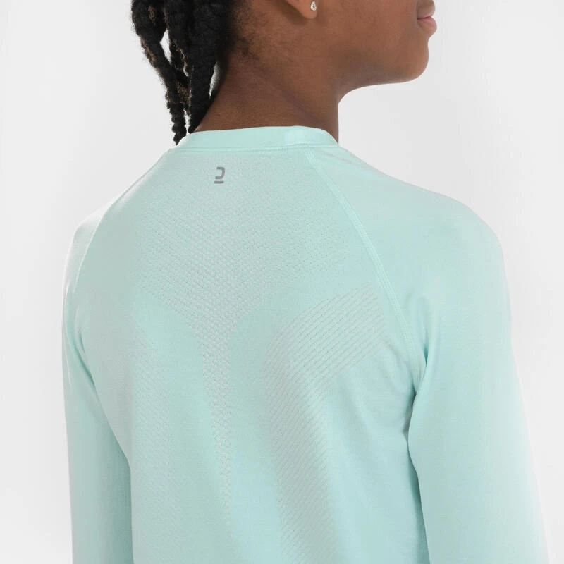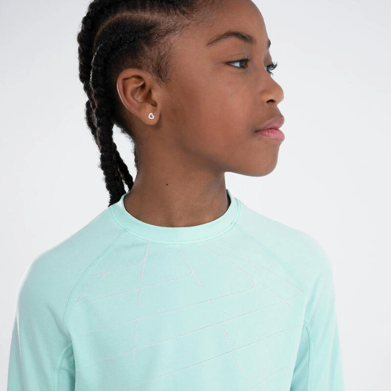 Nos concepteurs passionnés d’athlétisme ont conçu ce maillot manches longues pour fille. EIle peut courir sauter et lancer par temps frais en club ou à l’école.Vous trouvez que l’athlétisme en hiver c’est la « galère » ? Grâce à sa construction sans coutures, sa matière et sa coupe, avec ce t-shirt, votre enfant pourra aborder sa séance sans craindre le froid